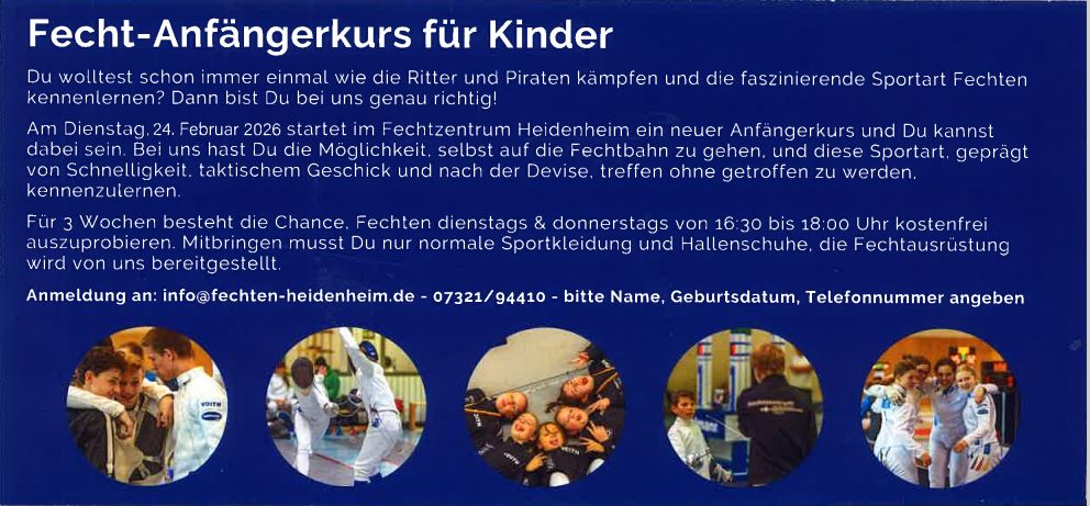 Anmeldung an info@fechten-heidenheim.de oder 07321/94410